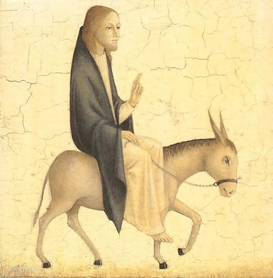 La figura dell’asino, mentre da un lato si collega alla cavalcatura dei re e degli immortali, propria delle culture dell’estremo Oriente (cfr. Gdc 5,10) dall’altro è presentato come cavalcatura, modesta, del Messia in segno d’umiltà. Il profeta Zaccaria annuncia che il Messia vittorioso cavalcherà un’asina (9, 9). I Vangeli presentano l’entrata di Gesù a Gerusalemme proprio su di un’asina. Egli stesso domanda ai discepoli di procurargliela (cfr. Mt 21:2,7; Lc 19:30-35; Gv 12:14). Agli occhi dei discepoli e della folla, Gesù si presenta Messia non violento, portatore di pace, colui che realizza la profezia di Zaccaria. I discepoli “sellano” l’asino con i loro mantelli, mentre altri li stendono lungo la strada. Questo gesto indica che mettono la propria esistenza nelle mani di Gesù, disposti a seguire un Messia di pace.